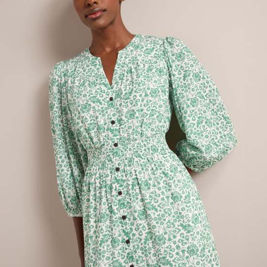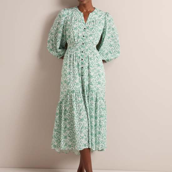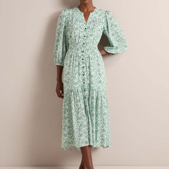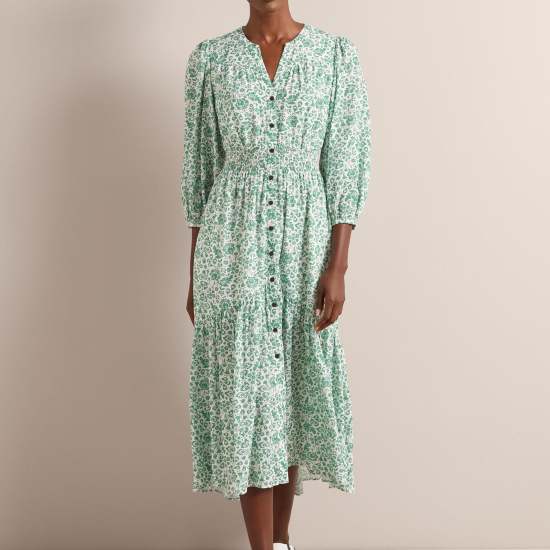 Cut from a beautifully light and drapey cotton viscose voile in two dreamy floral prints;Aspen is the ultimate throw-on-and-look-great summer dress. Machine washable;its flattering V-neckline;bracelet-length blouson sleeve and shirred waist;make it an effortlessly elegant;wear-on-repeat summer saviour.