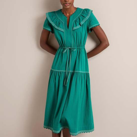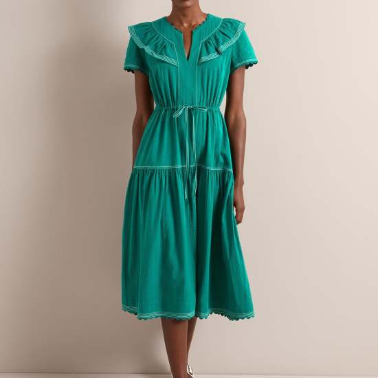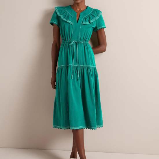 • Product name:Nessa Cotton Seersucker Maxi Dress - Dark Green