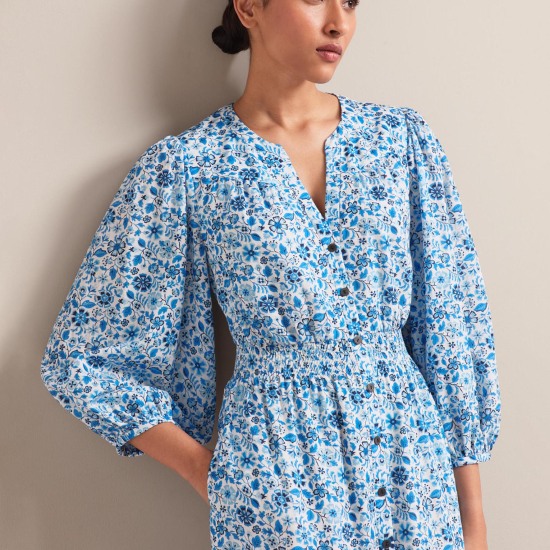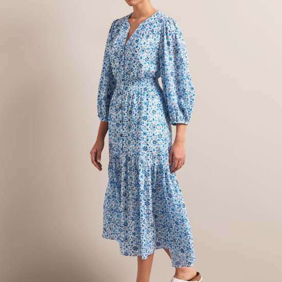 Cut from a beautifully light and drapey cotton viscose voile in two dreamy floral prints;Aspen is the ultimate throw-on-and-look-great summer dress. Machine washable;its flattering V-neckline;bracelet-length blouson sleeve and shirred waist;make it an effortlessly elegant;wear-on-repeat summer saviour.