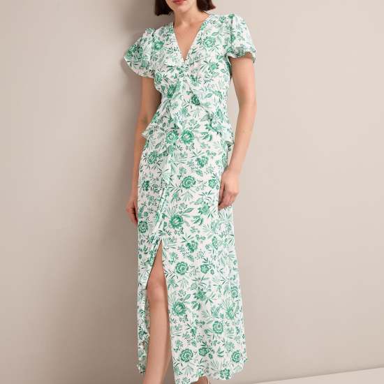 The most romantic of summer dresses;Vivienne is inspired by 1930s vintage style. Designed in a fully lined yet light and airy cotton viscose georgette;the cape sleeve;ruffle detailing at the front;back and waist;and sexy slit at the front of the skirt give it true 360 appeal. Add to that the shirred back waist for an easier fit and you’ve got an unashamedly feminine event dress that ticks all the boxes.